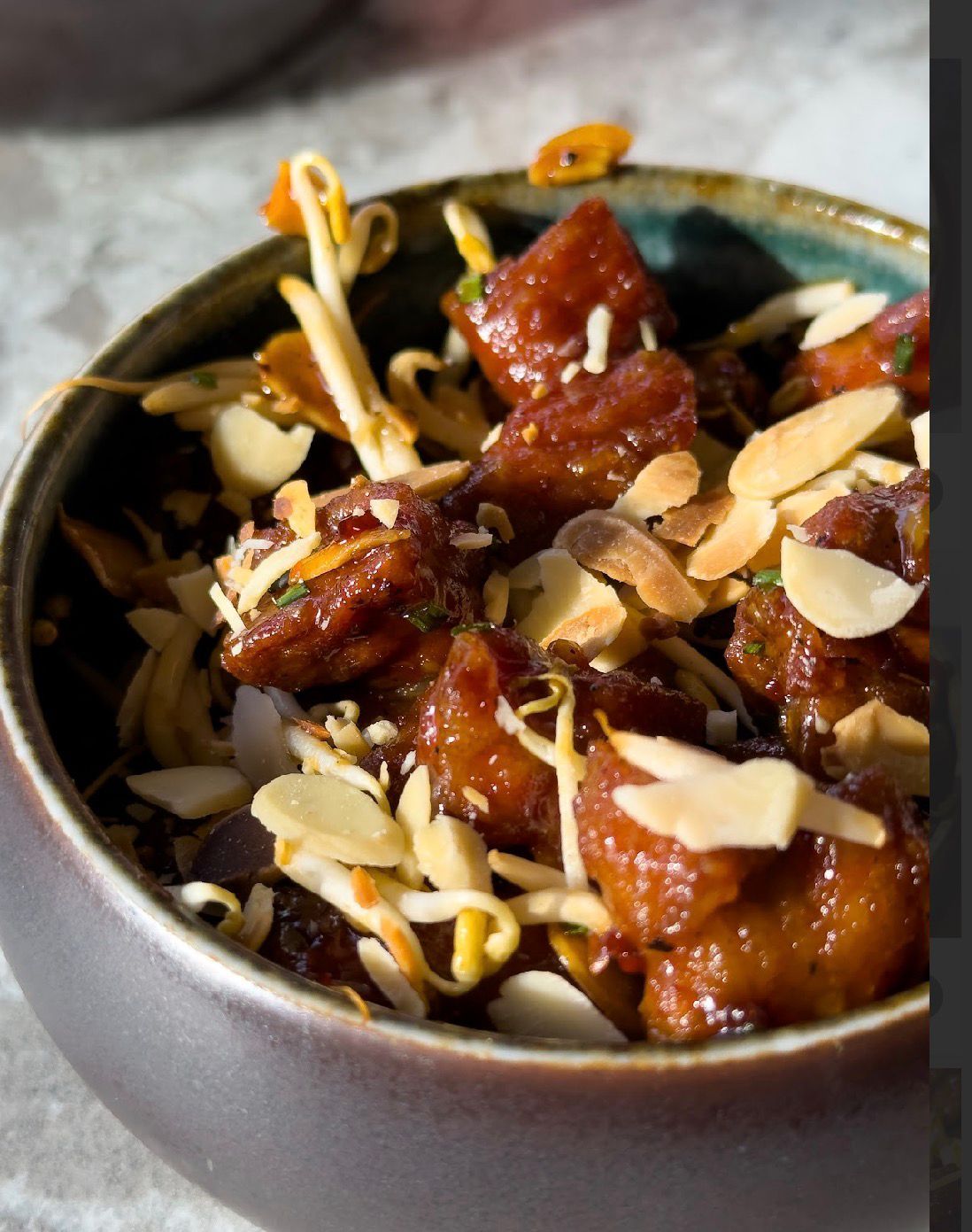 Capocollo di suino in stile thai,con salsa sweet chili e mandarle
